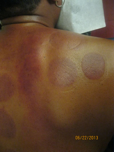 As the saying goes, a picture is worth a thousand words, so let’s show some post-cupping pictures from the CCCA here in Los Angeles for purposes of learning more about this ancient therapy. Here goes…