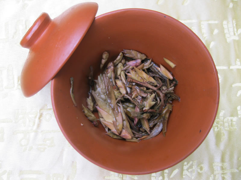 Just recently, I’ve started taking the spent leaves, which yield about 10 infusions, and cold brewing it along with other spent pu’ers, in addition to dried longgan and hibiscus to much fanfair by patients. More than one has speculated that such pleasingly sweet a blend would be well-received in the South, though it has been my experience that Cantonese aren’t the most adventuresome when it comes to these kind of things. 😉